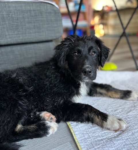 Arnold is a remarkably smart pup — he’s already fully potty trained, and loves puzzle toys that make him think. He’s showing his foster family his true personality now that he’s getting comfortable, so he will need a little help remaining calm around dinner time, and remembering that humans are to share not hoard.