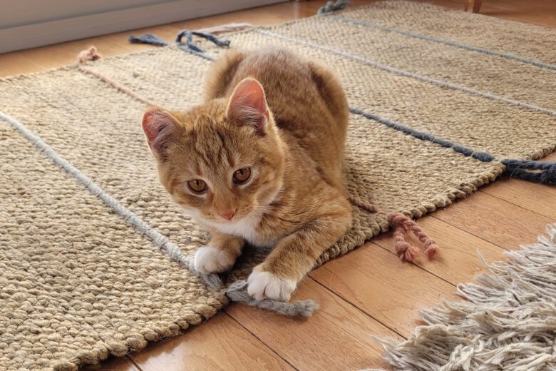 Bumper is our little orange adventurer who quite literally traveled from one town to another tucked into a car before being discovered. During his journey he earned a frostbitten ear — a tiny badge of honor — but incredibly, he came away with no other injuries. Because of his unconventional arrival, the name Bumper just stuck.