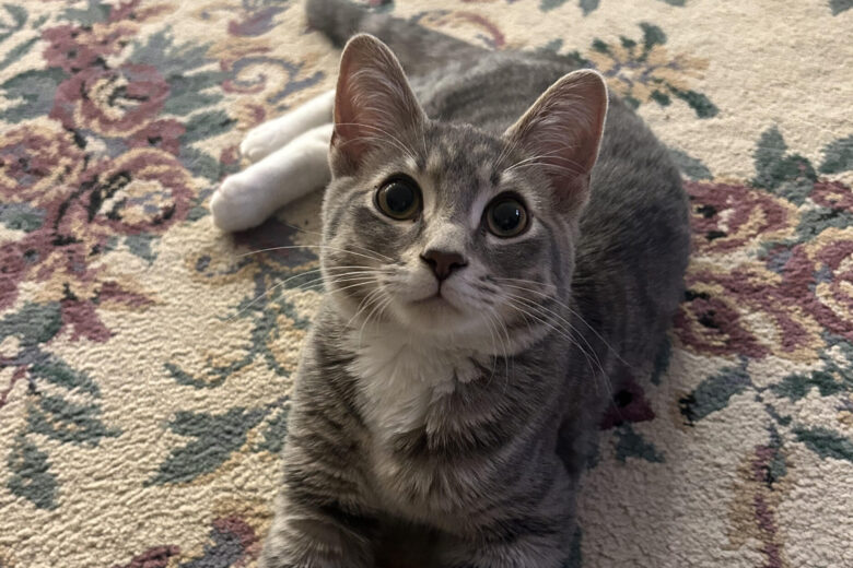 He’s incredibly social and loves to be wherever his people are—whether that’s “helping” in the office, supervising your snack choices, or riding in your arms like a proud little maître d’. Chef has shared space with other cats and is polite and friendly; he hasn’t met dogs yet, but given his sweetness, he’d likely adjust fine to a respectful, gentle canine sous-chef.