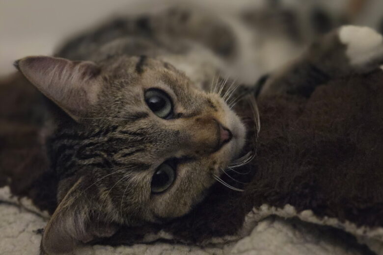 Jenny is a calm, self-assured girl who knows exactly what she likes and isn’t shy about claiming the comfiest spot in the room. Jenny is wonderfully affectionate, but always on her own terms; she’ll seek you out for snuggles and gentle pets when her love tank needs refilling, then happily return to lounging nearby. She does well with other cats given a slow, thoughtful introduction and enjoys playful moments with feline friends, while still figuring out how to play with people. Soft blankets and cozy beds are her happy place, and her quiet, independent nature makes her a perfect fit for a peaceful, low-key home. Jenny is the kind of companion who adds warmth without demanding the spotlight — just steady, comforting presence.