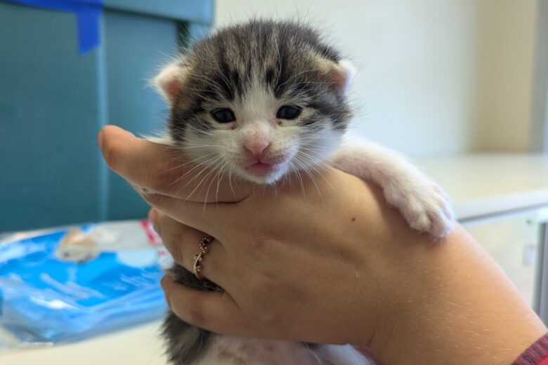 Don’t let the name throw you — there’s absolutely nothing sad about Sadness! This little one is full of kitten charm and is already growing into a bundle of fun. The only thing that might have you down is that he’s not quite ready for adoption yet. But trust us… once he’s big enough to head off to his forever home, missing out on him would be the real reason to feel blue!