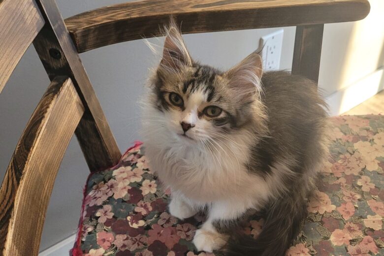 This long-haired beauty is as graceful as she is gentle, and her soft coat will require some regular brushing, a small task for such big cuddle rewards! Trinket is friendly with other cats and dog-savvy pups; she just appreciates a moment to observe before joining the fun. Her curiosity is thoughtful rather than frantic, and she finds joy in the little things: a sunbeam, a gentle scratch behind the ears, or a soft toy to bat around.